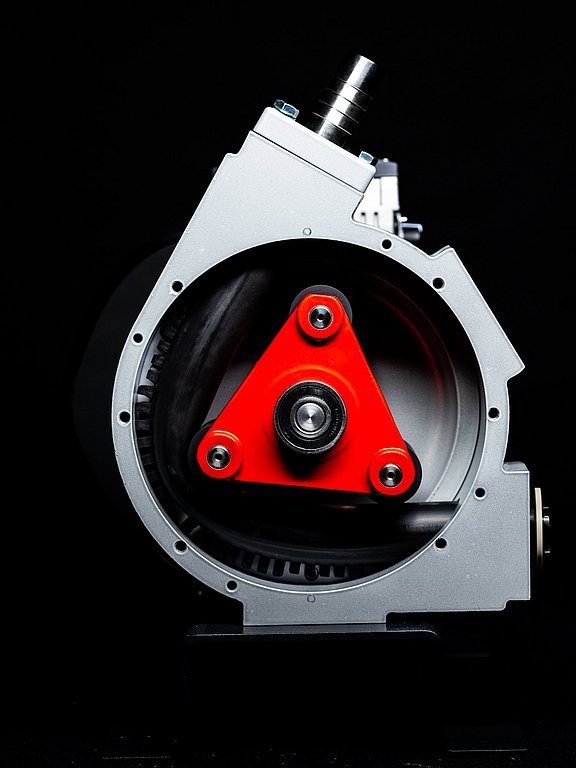 Schlauchpumpen sind Verdrängerpumpen bei denen ein medienbeständiger, elastischer Schlauch zusammengedrückt wird. Bei Trockenläufern durch Teflonrollen und bei Nassläufern durch Gleitschuhe. Die Drehung des Rotors bewegt das Medium im Schlauch weiter. Wenn der Schlauch in seine ursprüngliche runde Form zurückkehrt, entsteht ein Unterdruck, der das nachfolgende Medium ansaugt. Dieser Ansaugvorgang funktioniert unabhängig davon, ob die Saugleitung befüllt ist, was bedeutet, dass die Pumpe trocken selbstansaugend ist.